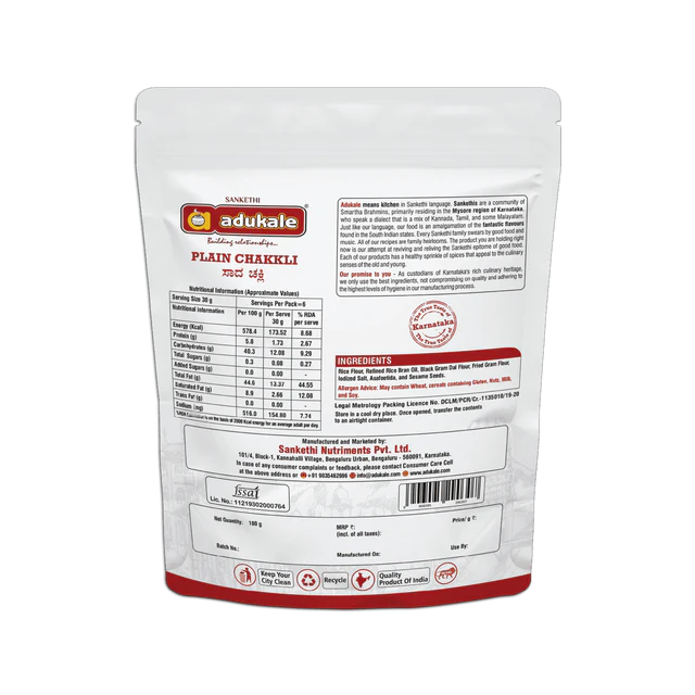 Chakklis are festive favourites in all parts of India. They are most commonly prepared in every home during Diwali and Ganesh Chaturthi. Adukale brings to your our family’s heirloom recipe that you can enjoy with your favourite beverages or as an accompaniment with food.